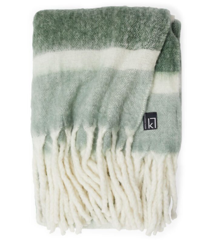 Dette stripete, håndvevde pleddet er både koselig og stilig! Laget av høykvalitets ull og akryl, og med store, tykke frynser som gir en ekstra touch av eleganse.