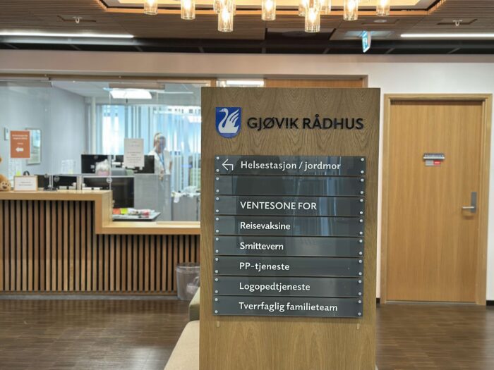 Med oppdraget i Gjøvik rådhus fikk vi levere et bredt utvalg av spesialtilpassede produkter – til både stor hjelp og glede for ansatte og besøkende. I tett samråd med prosjektets arkitekter har vi produsert en komplett pakke som balanserer det estetiske med det funksjonelle, alt trygt plassert under paraplyen til Gjøvik kommunes visuelle profil.
