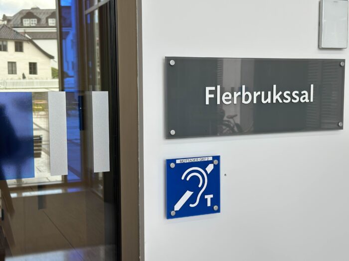 Innendørs leder taktile henvisningsskilter publikum dit de skal. Også akrylskiltene på nevnte eikpyloner samt andre skilt som peker til for eksempel toaletter, har taktil tekst. Dette er detaljer som ofte blir oversett, men som er avgjørende for å oppfylle UU-krav og derav skape et inkluderende bygg.