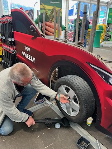 Kort fortalt er Wheely en smart og brukervennlig løsning som gjør dekkskift enklere, og det helt uten tunge løft! Den veier under én kilo, tåler vann, olje og løsemidler, og gir både rygg og knær en velfortjent pause. Enten du står hjemme i garasjen, på verkstedet eller langs veien, gjør Wheely jobben enklere, sikrere og mer effektiv.